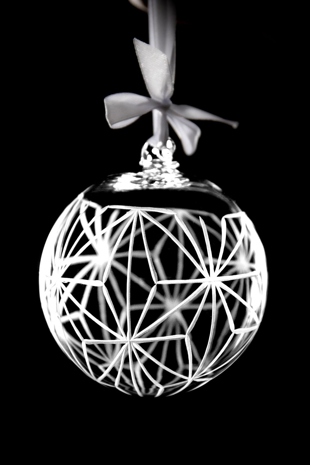 Glory, téměř geometrický design skládá motiv hvězd, které k vánocům neodmyslitelně patří. Propadněte kouzlu Vánoc s ručně rytými elegány na vašem stromečku.