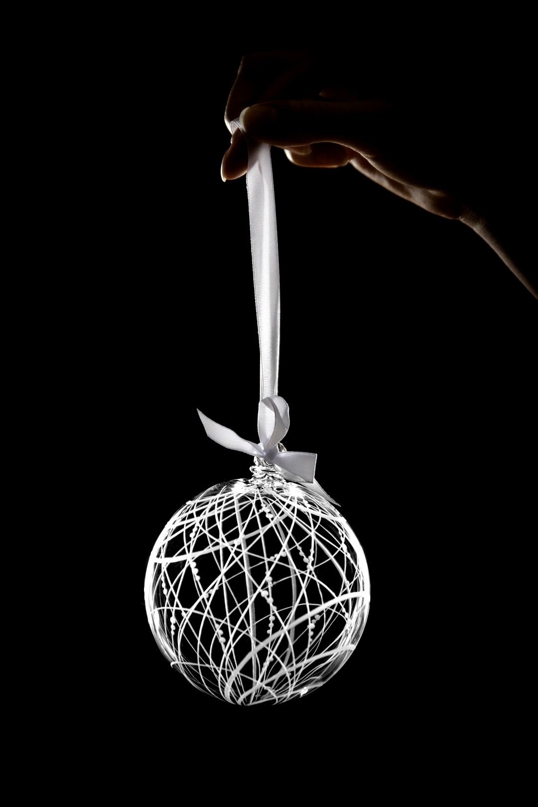 Ručně ryté linky objímají kříšťálové ozdoby Orbit. Dopřejte svým vánocům kouzelné, nadpozemské a jedinečné ozdoby.