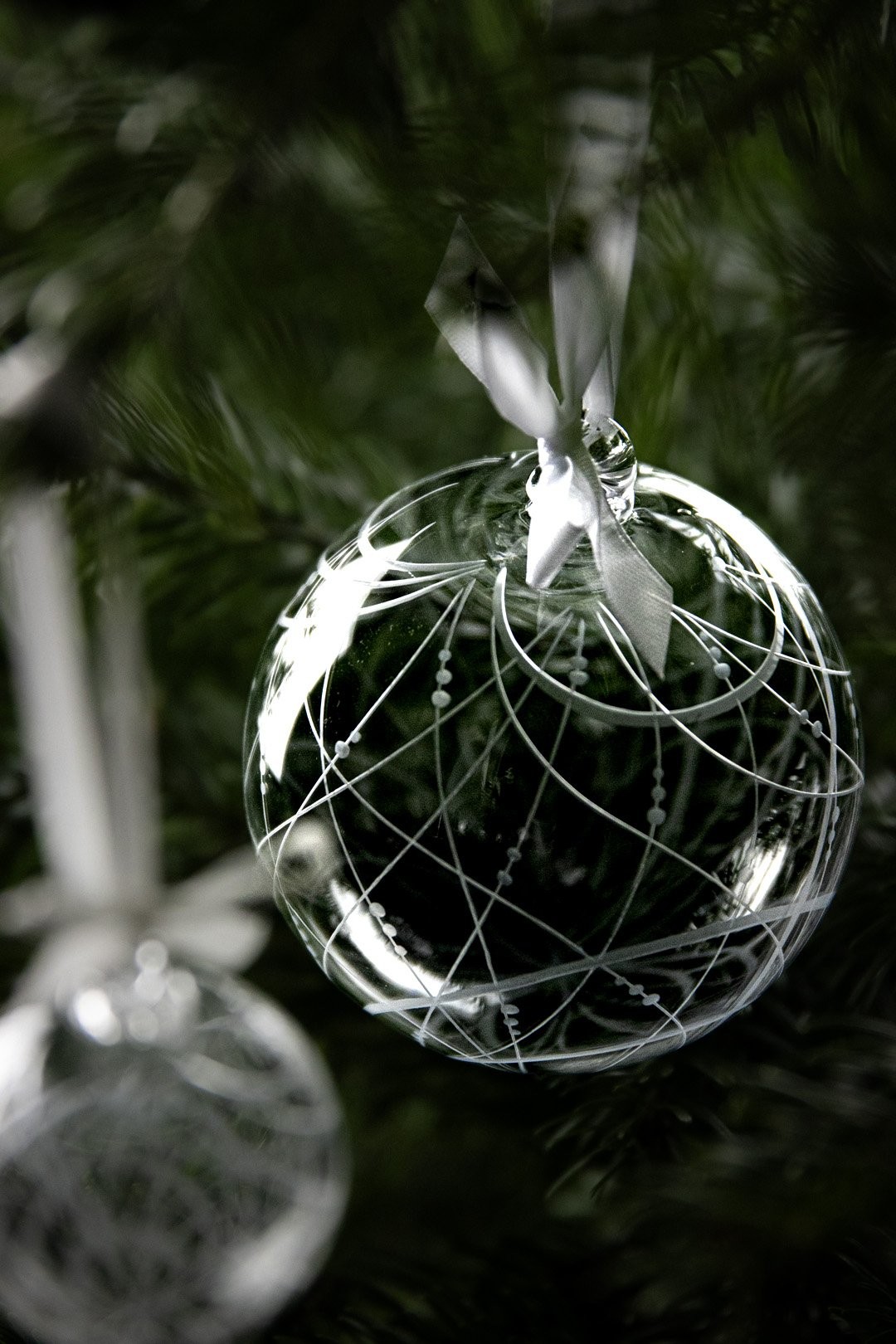 Ručně ryté linky objímají kříšťálové ozdoby Orbit. Dopřejte svým vánocům kouzelné, nadpozemské a jedinečné ozdoby.
